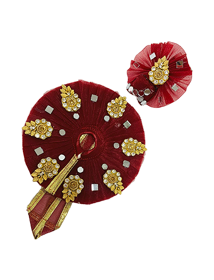 - TRADITIONAL DESIGN: Beautifully crafted maroon Laddu Gopal dress featuring elegant golden floral embellishments and decorative mirror work for a stunning traditional look