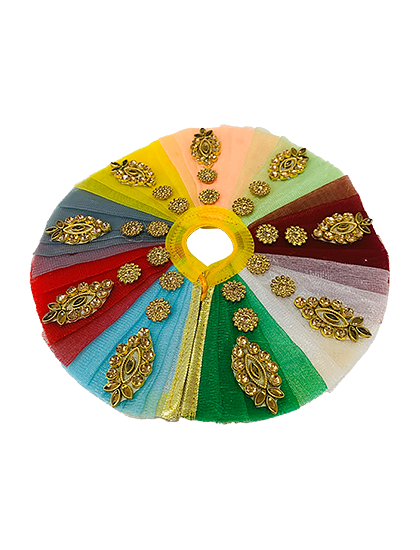 - TRADITIONAL DESIGN: Multi-colored circular dress with decorative pearl-like beading along the seams, perfect for adorning Laddu Gopal idols
