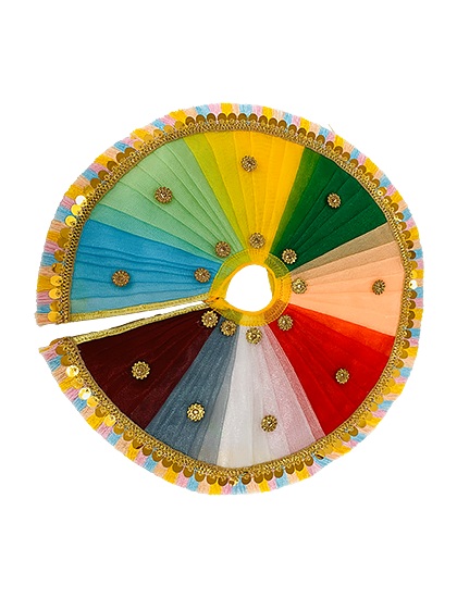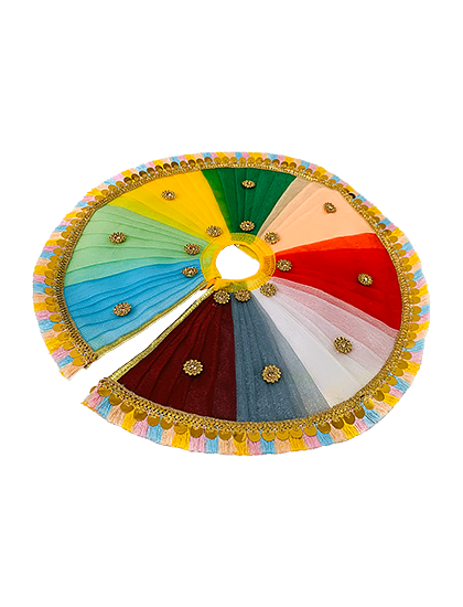 - TRADITIONAL DESIGN: Multi-colored circular dress with decorative pearl-like beading along the seams, perfect for adorning Laddu Gopal idols