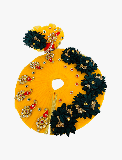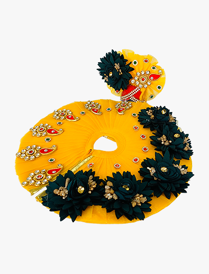 Atharvivan Pink and Blue Floral Laddu Gopal Dress, Small, Decorative Art with Embellishments (Yellow with Dark Green Flowers)