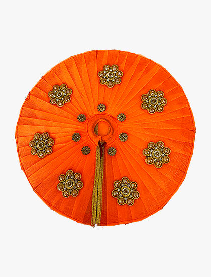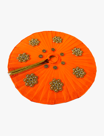 - TRADITIONAL DESIGN: Beautiful orange decorative dress adorned with intricate golden flower motifs and embellishments, perfect for Laddu Gopal worship