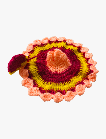 - TRADITIONAL DESIGN: Handcrafted floral pattern dress for Laddu Gopal idol featuring vibrant burgundy, yellow, and peach colours in a concentric circular design