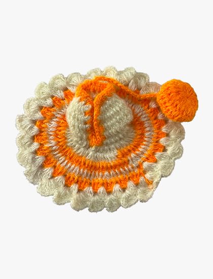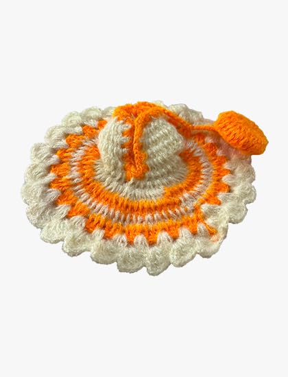 - TRADITIONAL DESIGN: Handcrafted crochet dress featuring a beautiful spiral pattern in white and orange colours, perfect for Laddu Gopal deity