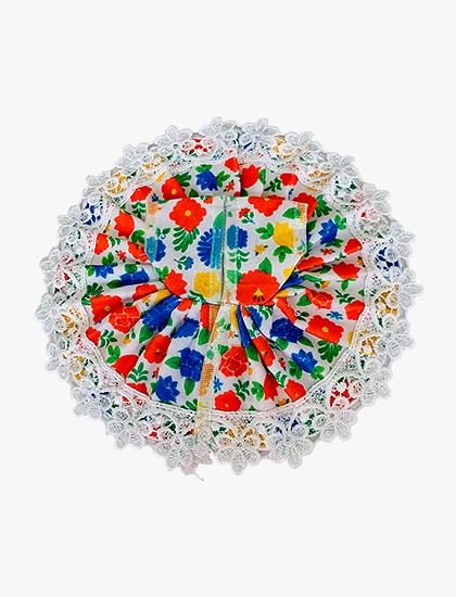 - DESIGN FEATURES: Beautiful floral pattern dress with white lace trim, featuring vibrant red and blue flowers on a light background, perfect for Laddu Gopal idols