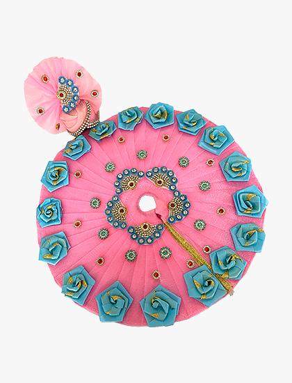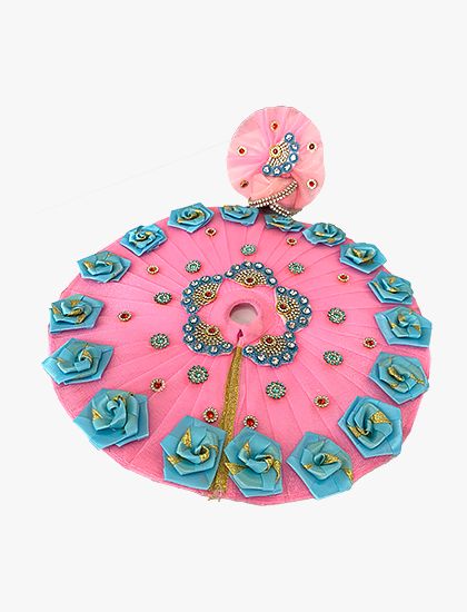 • PREMIUM DESIGN: Beautiful pink dress adorned with turquoise blue roses and intricate golden detailing, perfect for Laddu Gopal idol size 4-5