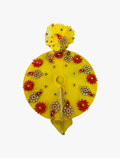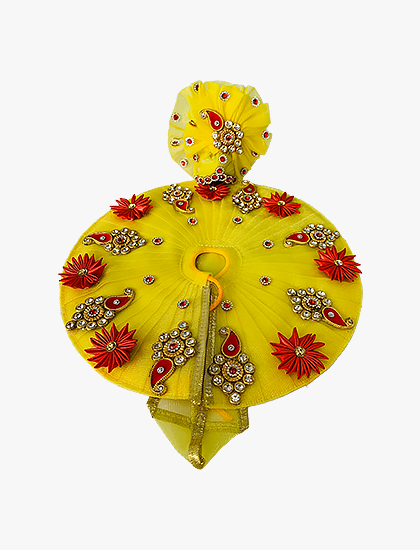- TRADITIONAL DESIGN: Beautiful yellow dress for Laddu Gopal idol featuring intricate floral patterns and decorative elements with red flower motifs