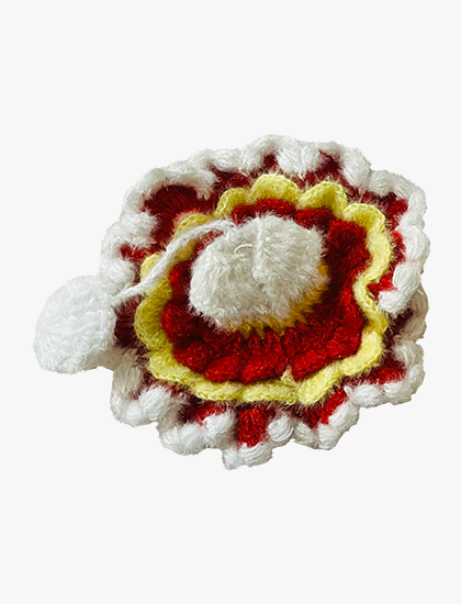 - TRADITIONAL DESIGN: Handcrafted dress for Laddu Gopal idol featuring vibrant red, yellow, and white colours in a layered flower pattern design