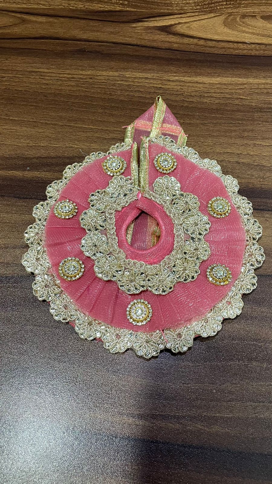 Light Pink Color With Golden Lace on Border Laddu Gopal Ji Dress