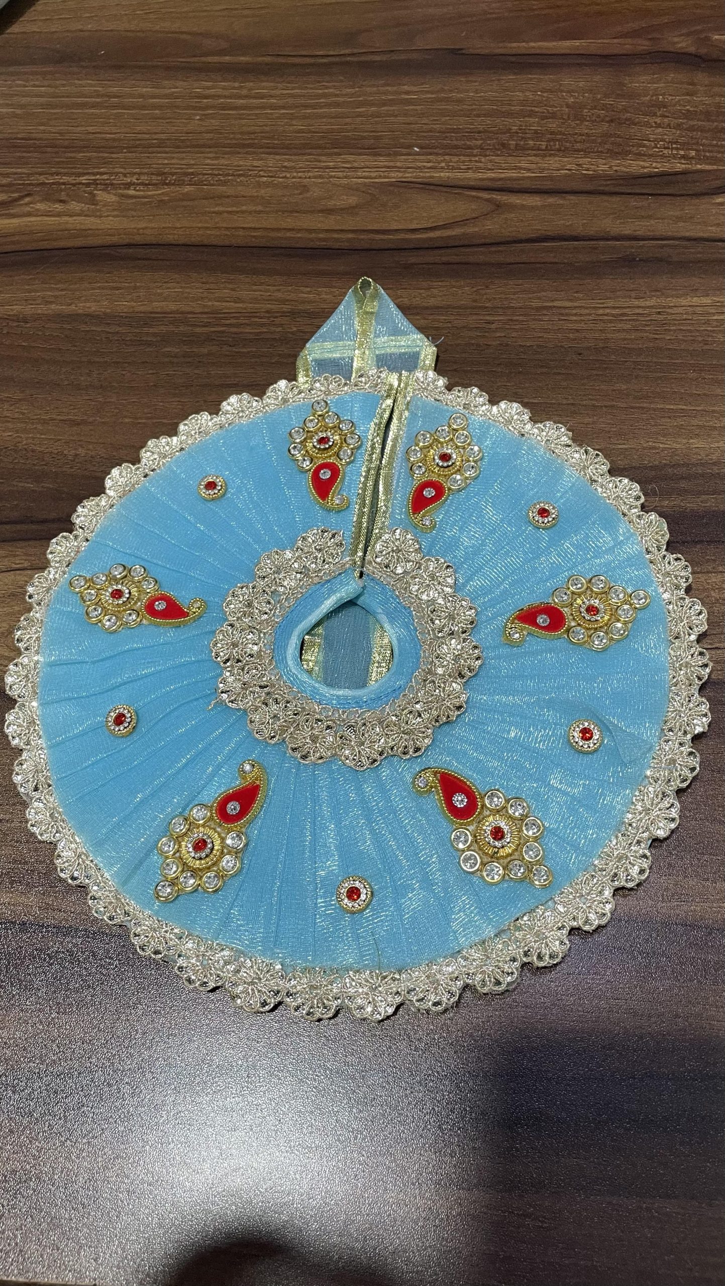 Sky-blue Color With Lace Border and Patches Laddu Gopal Ji Dress