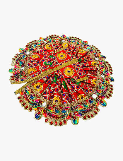 • TRADITIONAL DESIGN: Intricately crafted Laddu Gopal dress featuring vibrant red base with detailed multicolour embroidery and mirror work embellishments