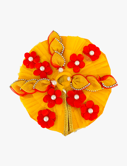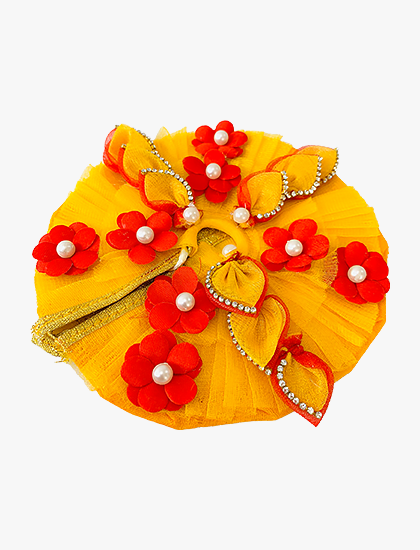 - TRADITIONAL DESIGN: Exquisite yellow dress adorned with red floral motifs and pearl-like stone embellishments, perfect for Laddu Gopal idol size 2-3 number