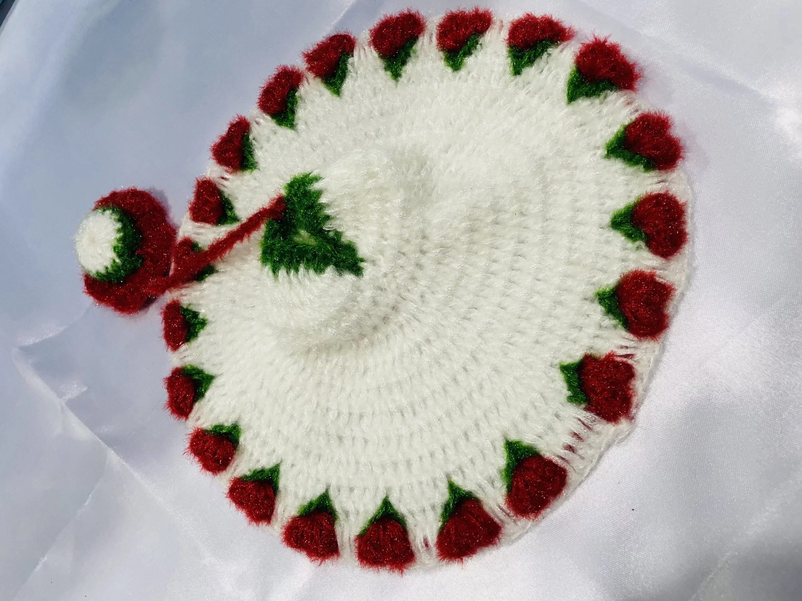 White Color With Red Rose Design Woolen Winter Laddu Gopal Ji Dresses