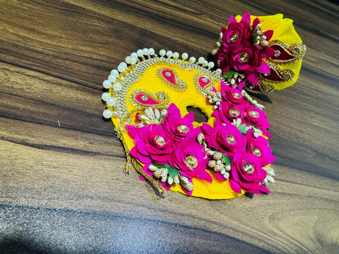 Buy this beautiful yellow and pink color dress with pink color flowers for your Laddu Gopal Ji.