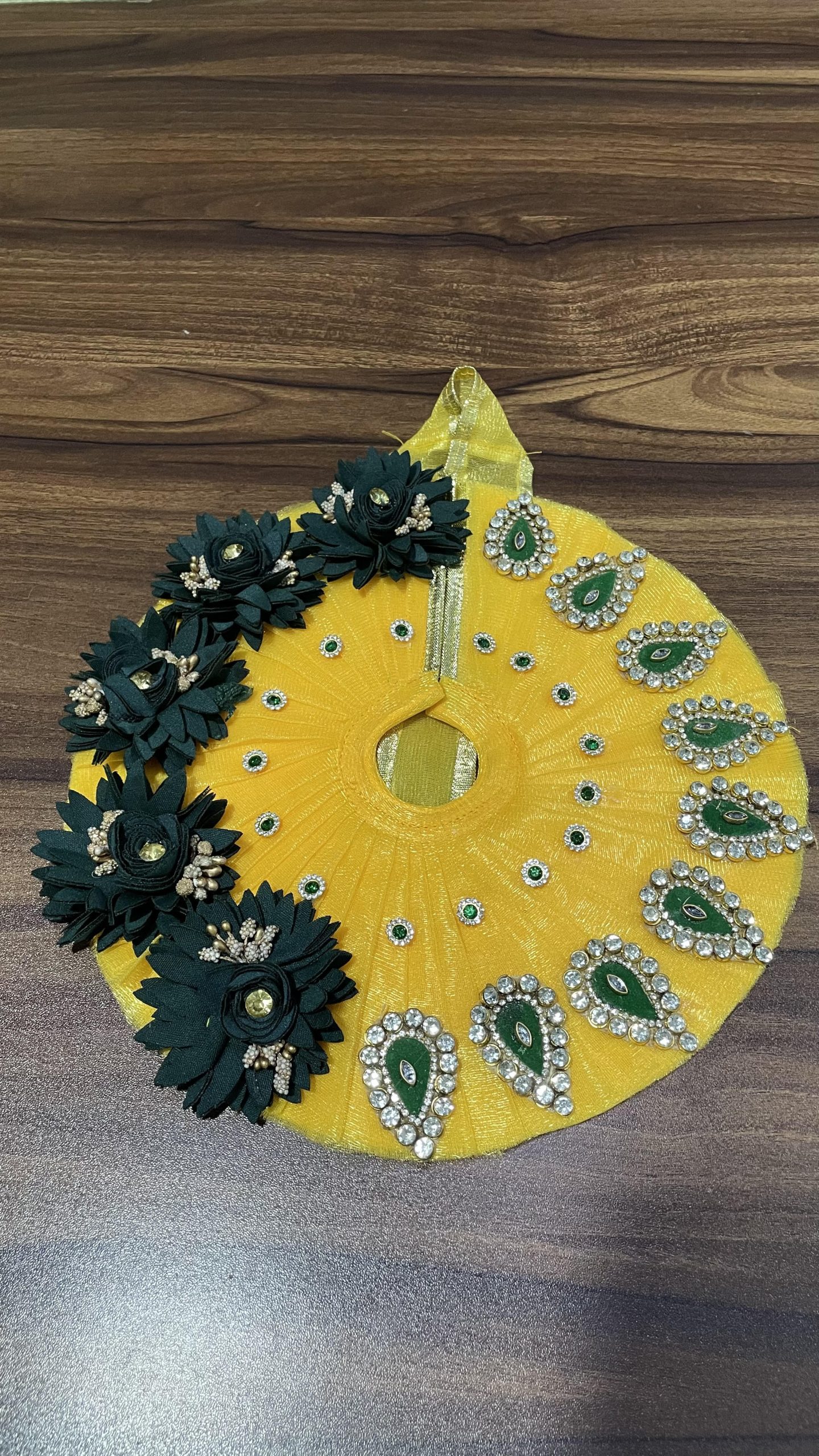 Yellow With Green Flowers and Patches Laddu Gopal Ji Dress
